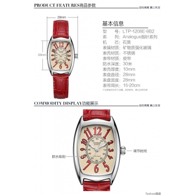 商品名称:送给亲爱的】CASIO指针系列网红小红表女士石英表手表 【小红表】 卡地亚的造型,卡西欧的价格。适合在校学生和白领的搭配,火红色的表带象征着热气活力,这款小红表甜美知性,线条柔和细腻,表盘独居设计感强,带点小复古的感觉。喜欢的小仙女们可以