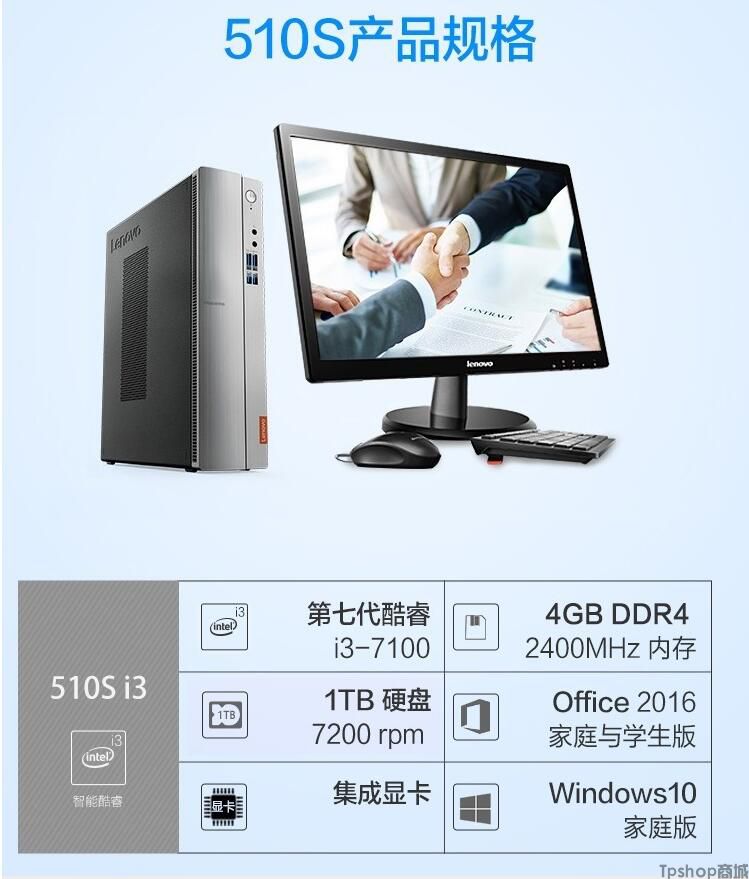 商品名称:联想天逸510S商用台式机办公电脑i3-7100 i5-7400 128G 510AG5400