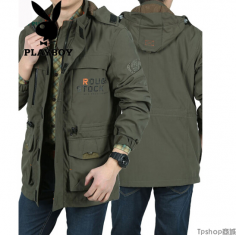 哥弟女装2018春季新款口袋趣味图案贴标连帽针织长开衫A400065 连帽设计 实穿美观