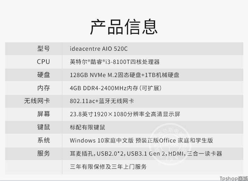 • 产品名称:Lenovo/联想 AIO 520 24I...