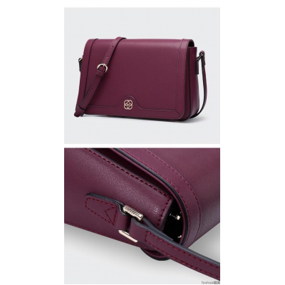 红谷HONGU单肩包女时尚休闲牛皮斜挎包女小方包 H51207859中紫
