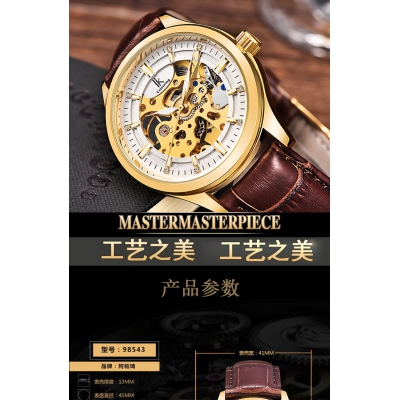 阿帕琦IK 手表镂空全自动夜光机械表 男表防水商务韩版时尚休闲腕表学生运动男士手表新款钟表 金边白面金机心/过万评价