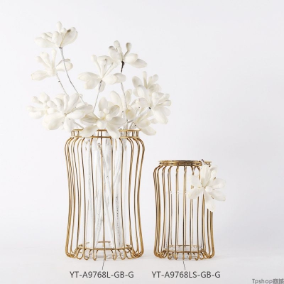 定制 金色铁艺镂空无极花器花瓶花插摆件客厅书房软装家居饰品