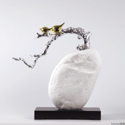 新中式现代简约办公室玄关树枝鸟摆件样板房别墅软装创意家居饰品