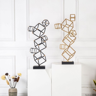 欧式样板房间酒店别墅创意家居客厅电视柜立体几何装饰品雕塑摆件