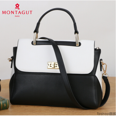 梦特娇Montagut2018春季新款真皮女包时尚女士手提包欧美潮流拼色单肩斜挎包