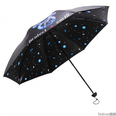 天堂伞 全遮光黑胶转印宇宙星空三折晴雨伞太阳伞