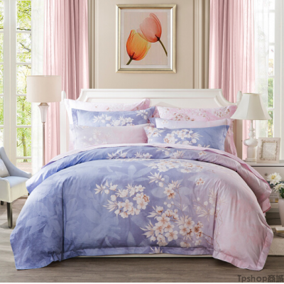 LUOLAI罗莱家纺 229纱支纯棉四件套 全棉床上用品床品套件床单被罩 WD5006晨暮间 220*250