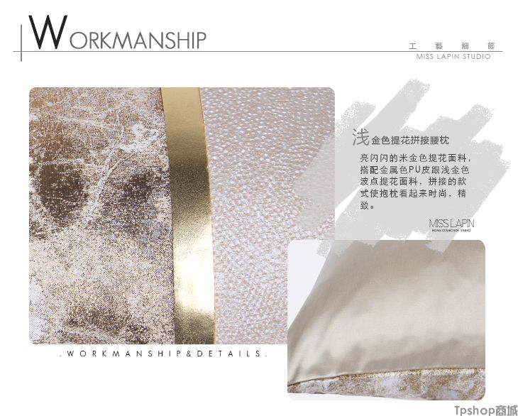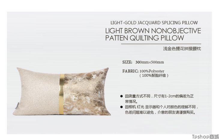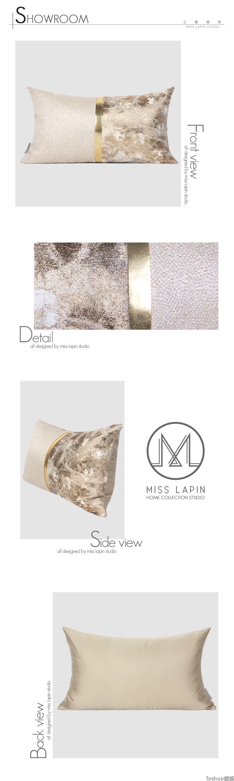 商品名称:澜品家居简约现代北欧/样板房靠包抱枕靠垫/浅金色提花拼接腰枕