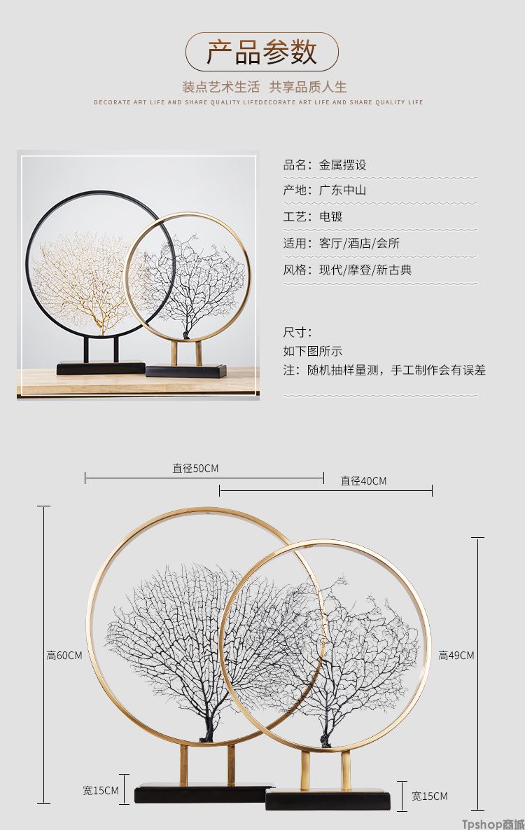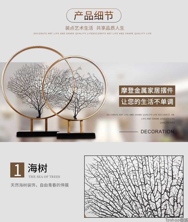 商品名称:样板房摆件现代简约酒店会所北欧海树金属摆件客厅电视柜摆设装饰